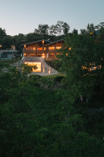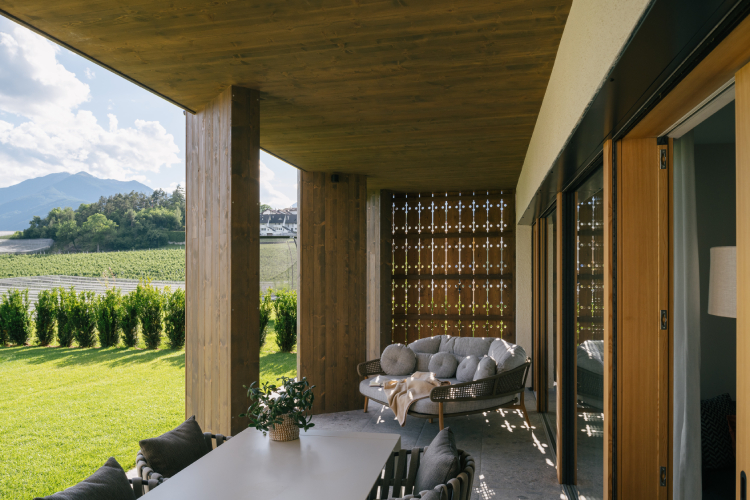 "Das Augenmerk im Anton Nature Hideaway liegt darin, dem Gast diesen besonderen Ort auch architektonisch nahe zu bringen. Südtiroler Bauweise neu interpretiert. In Anlehnung an ein traditionelles Südtiroler Gehöft wurde das Gebäudevolumen in zwei Einheiten strukturiert und sämtliche Wohnräume auf zwei Geschosse nach Süden hin ausgerichtet. Die Gebäudesprache ist regional verwurzelt. Die Liebe zum Detail und den ornamentisch gestalteten Balkonbrüstungen und Fassaden machen das Gästehaus zu etwas Besonderem. Große Fenster rahmen die tolle Eisacktaler Landschaft ein und lassen Tageslicht in die Innenräume strömen." Arch. Andreas Gruber